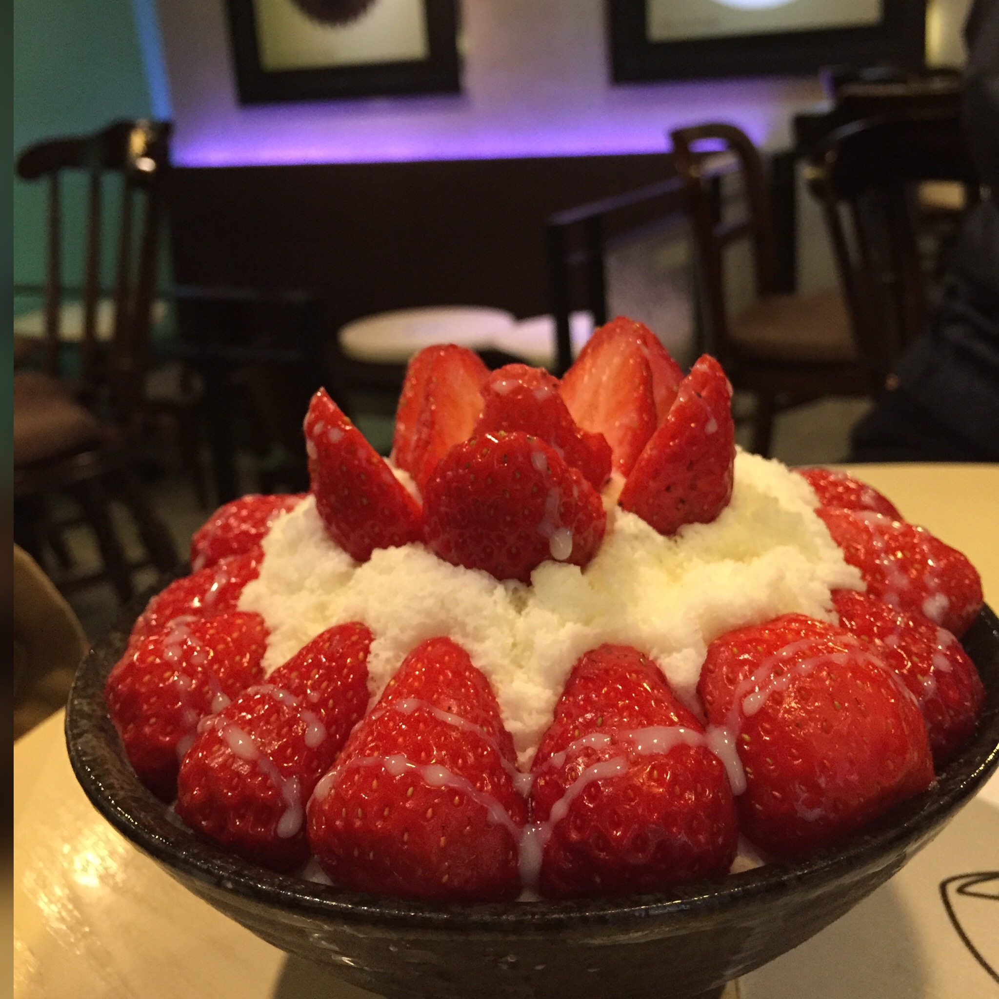This was a random find but I was pleasantly surprise when I dig into the bowl of dessert. There were more strawberries hidden in the ice flakes!!! I expected that there would only be more ice but found like 5 to 6 more inside… Super yummy! Korean strawberries are AWESOMELY SWEET!!!